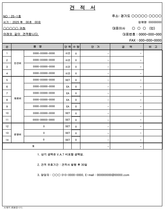아래는 견적서 예시 양식입니다. 필요에 맞게 수정하여 사용하세요!