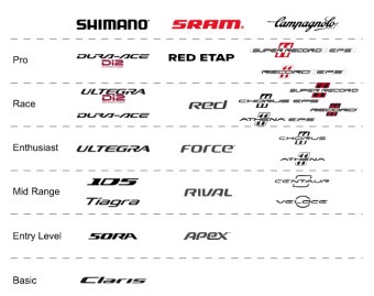 자전거의 성능과 가격을 결정짓는 핵심 요소 중 하나는 구동계입니다. 시마노(Shimano) 기준으로 구동계를 나누면 다음과 같습니다.