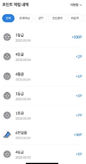 6천걸음도 해당되고 착한운전도 해당대요 ^^ 조금만 달리면;;4등급대요