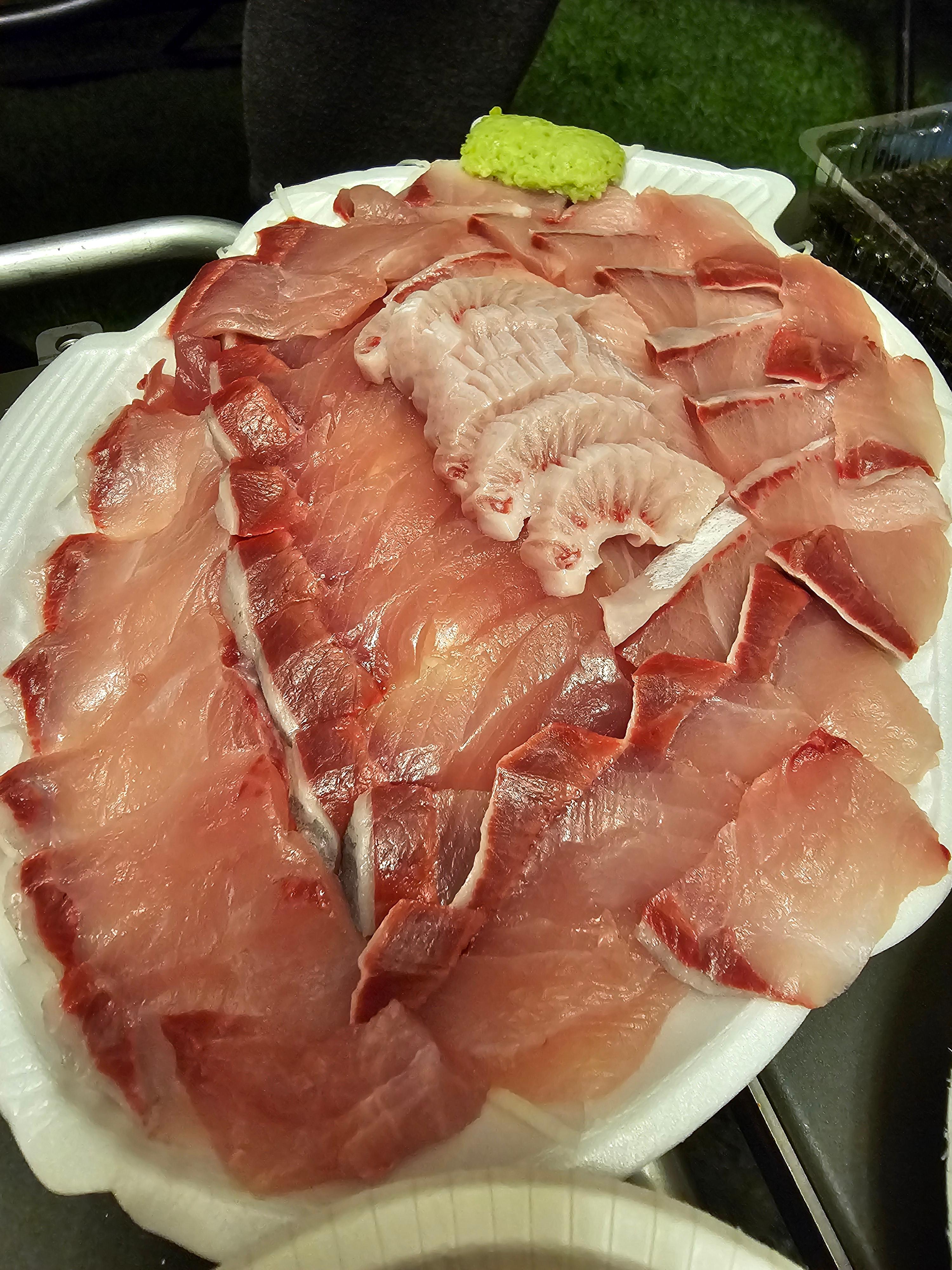 접시에 담긴 대방어 회는 양도 많고 맛도 훌륭했습니다.