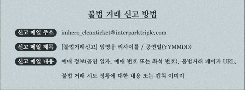 - 불법 거래 주의: 불법적으로 티켓을 판매하거나 구매하는 행위는 법적으로 처벌될 수 있습니다.