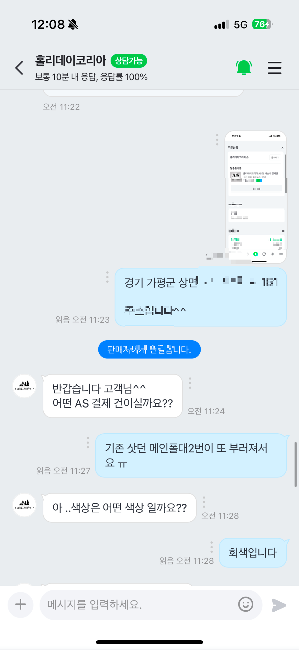 - 홀리데이 AS절차가 바뀌엇어요 네이버쇼핑몰에서 홀리데이 톡톡을 하시면 가능합니다.