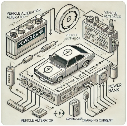 그남는 전기를 주행충전기에서 안정적으로 파워뱅크로 들어가는 원리라고 합니다.