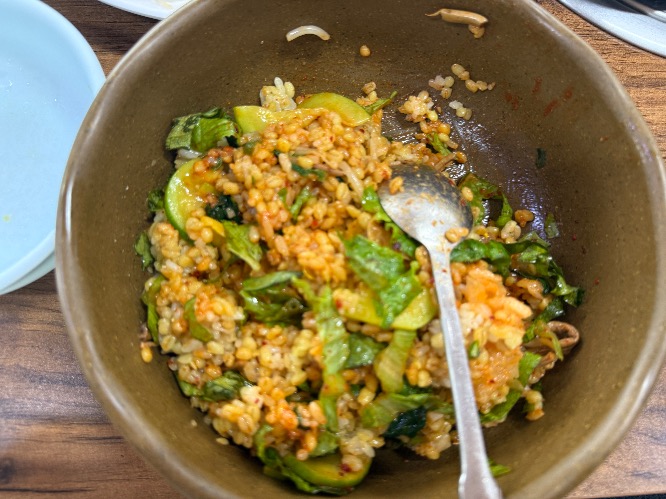 보리밥에 그릇엔 비벼먹는 상추가 나와요