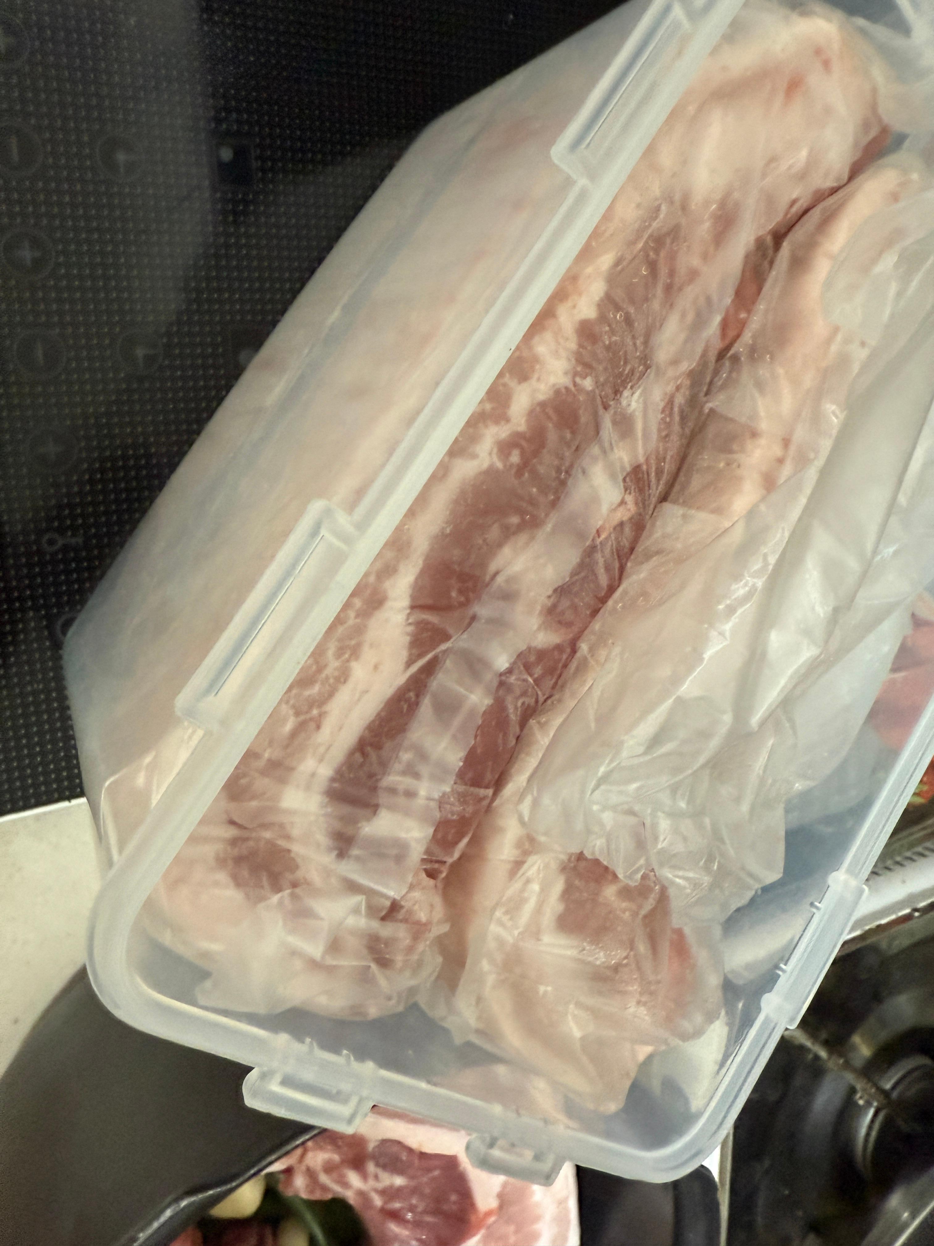 • 남은 삼겹살은 랩으로 싸서 김치통에 넣어 숙성 보관하거나, 2주 이상 보관하려면 냉동실에 넣으세요.