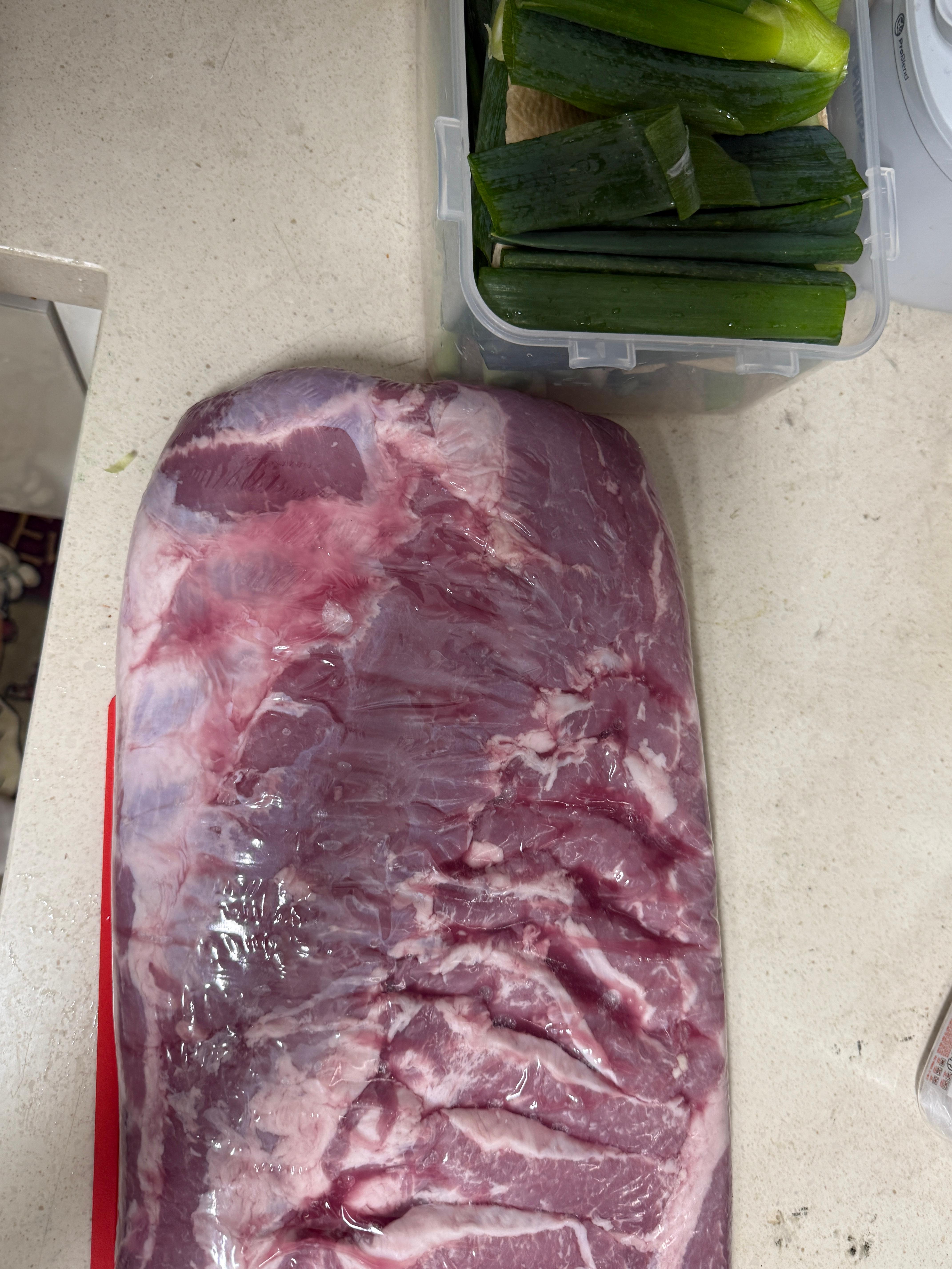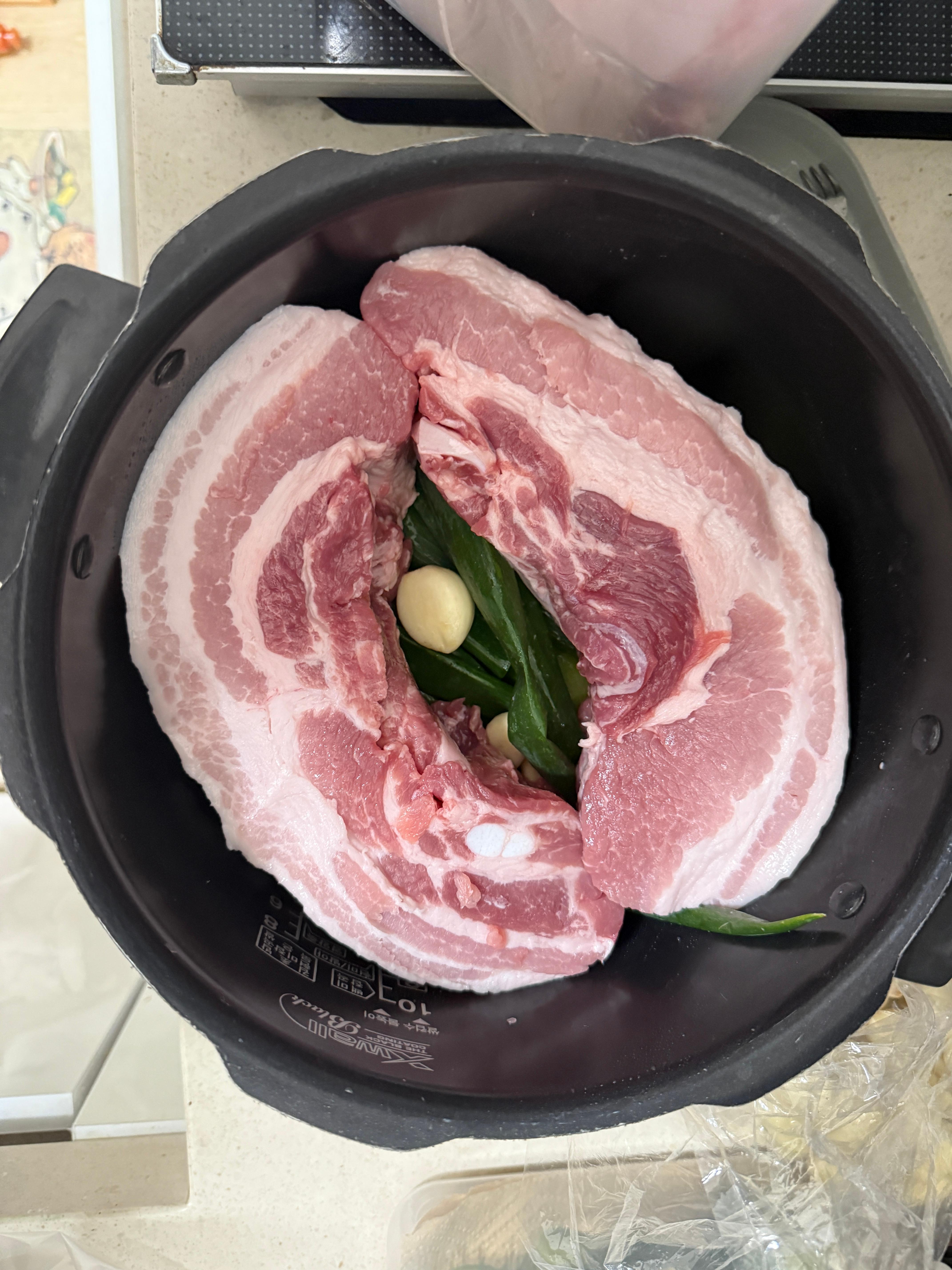 • 저는 오늘 저녁은 삼겹살 수육을 준비했어요. 밥솥에 수육을 조리한 뒤 에어프라이어에 한번 더 돌리면 바비큐 맛을 낼 수 있습니다.
