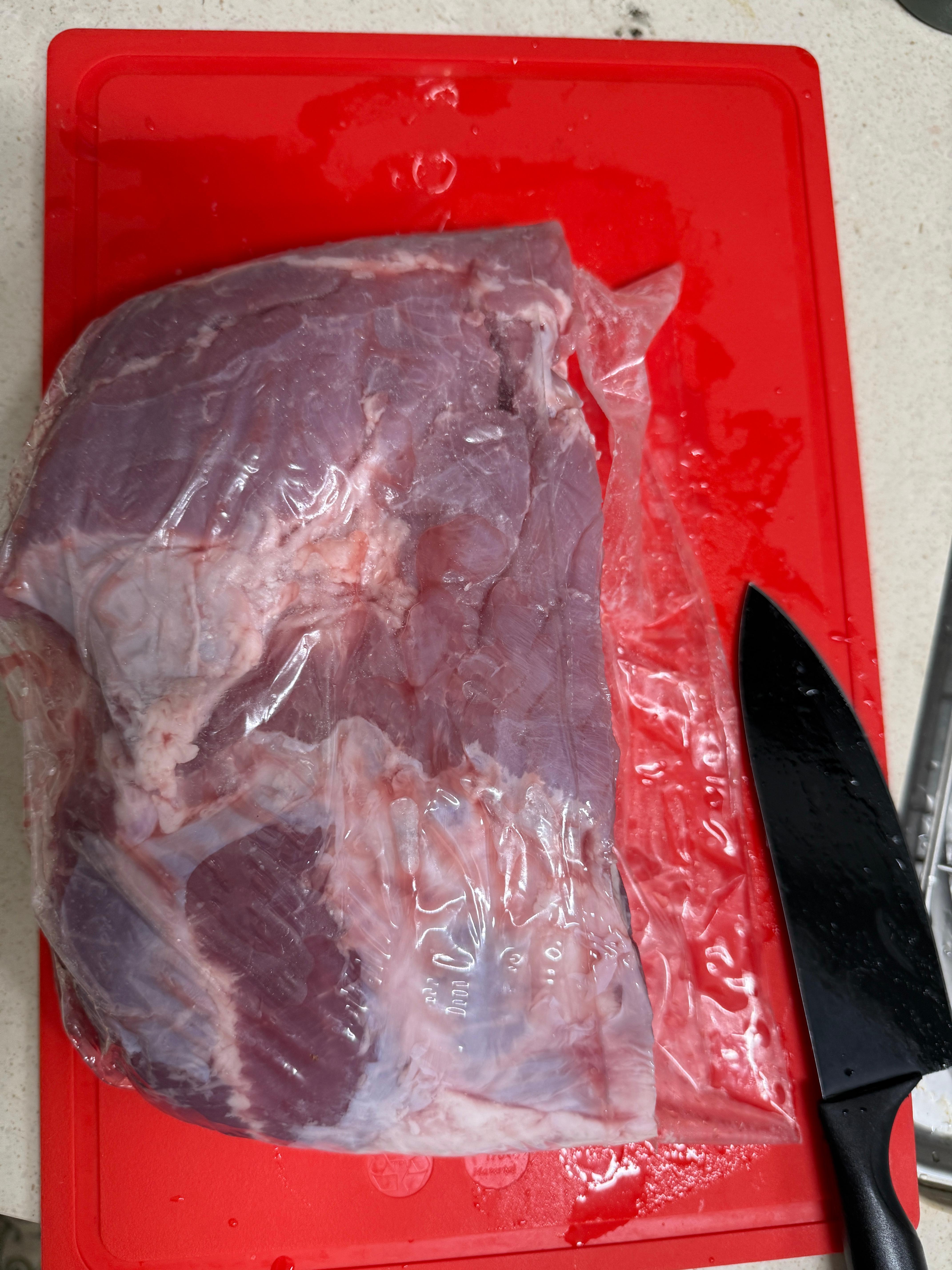 1. 코스트코에서 구입한 6kg 정도의 통삼겹살은 크기가 커서 도마 위에 올리기도 쉽지 않아요.