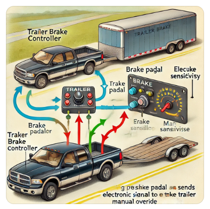 트레일러 브레이크 컨트롤러 (Trailer Brake Controller, TBC)는 차량이 트레일러를 견인할 때 트레일러의 브레이크를 차량과 연동하여 제어하는 장치입니다. 이를 통해 보다 안정적인 제동 성능을 제공하고, 특히 무거운 짐을 실은 트레일러를 끌 때 안전성을 높여줍니다.