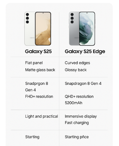 S25는 실용적이고 단단한 느낌, S25 엣지는 세련되고 몰입감 있는 느낌을 선호하는 분에게 적합합니다.