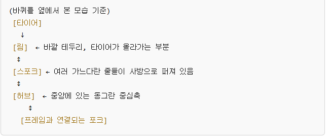 - 림과 허브를 연결하는 가느다란 금속 줄이에요.